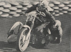 I Standard 500cc kunne det store fynske publikum glæde sig over en DM-titel til den populære Kai Holck Mogensen fra Odense. Her ses Holck Mogensen forrest i tæt kamp med den senere sølvmedaljetager, Helge Kamuk fra Ullerslev.